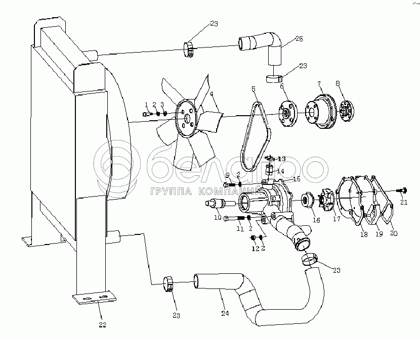 Каталог запасных частей к технике: Weichai WP2.1D18E2. Water Pump and Fan Assembly