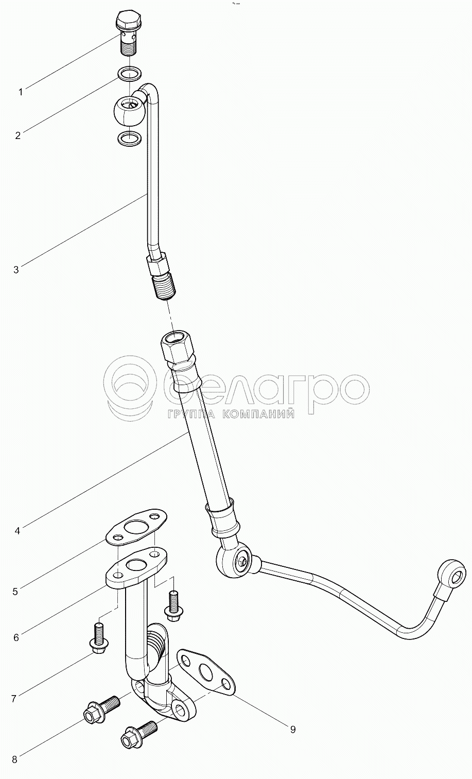 Каталог запасных частей к технике: Weichai WP4.1 DH4.1K0320. Turbocharger Oil Pipe Group