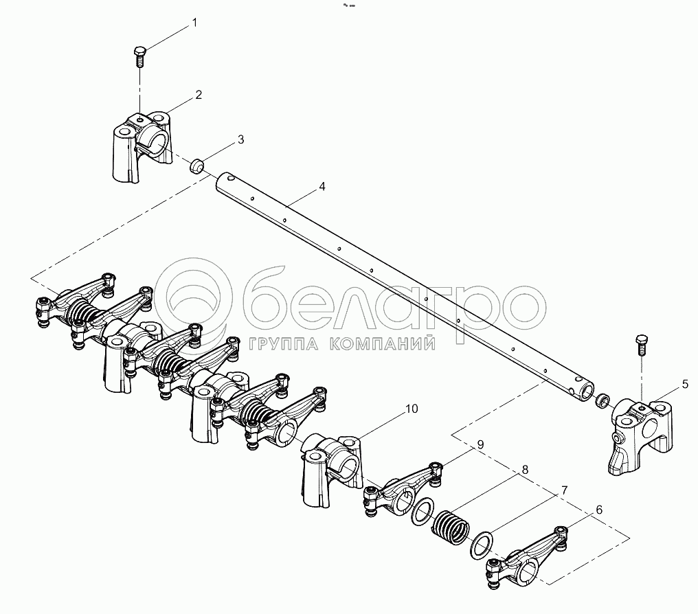 Каталог запасных частей к технике: Weichai WP4.1 DHN4.1Q0006. Integrated Rocker Arm Shaft Assembly