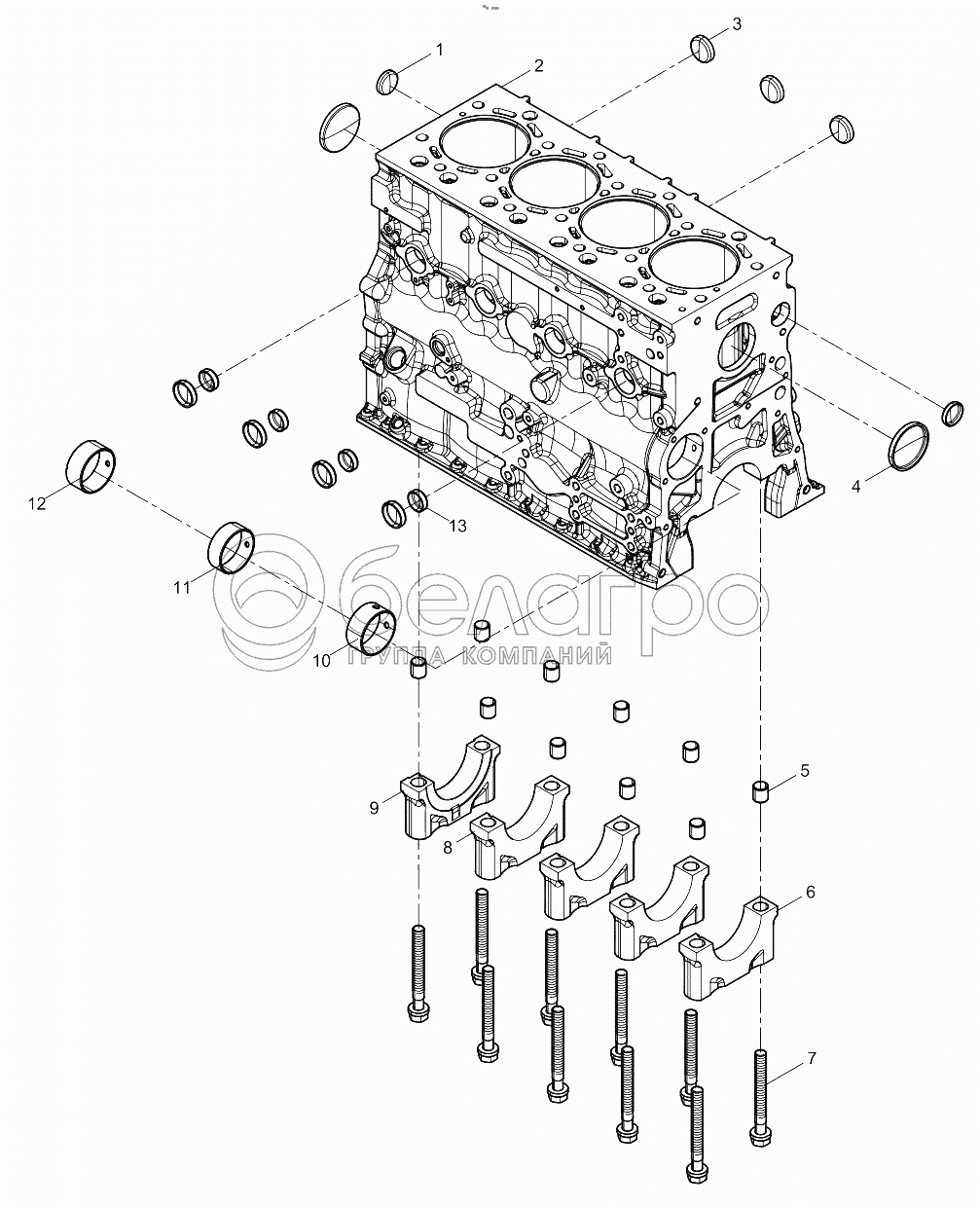 Каталог запасных частей к технике: Weichai WP4.1 DHN4.1Q0006. Crankcase pre-assembly