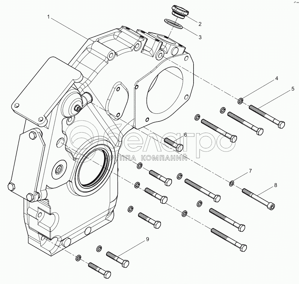 Каталог запасных частей к технике: Weichai WP6 DHB06D0018. Front wall cover assembly (gear end)