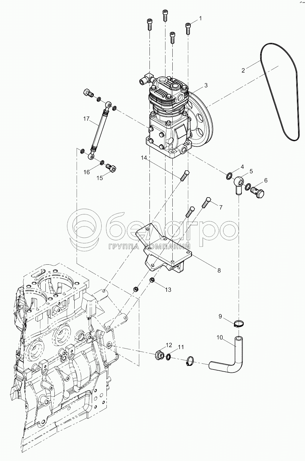Каталог запасных частей к технике: Weichai WP6 DHB06G0131. Air Compressor Assembly