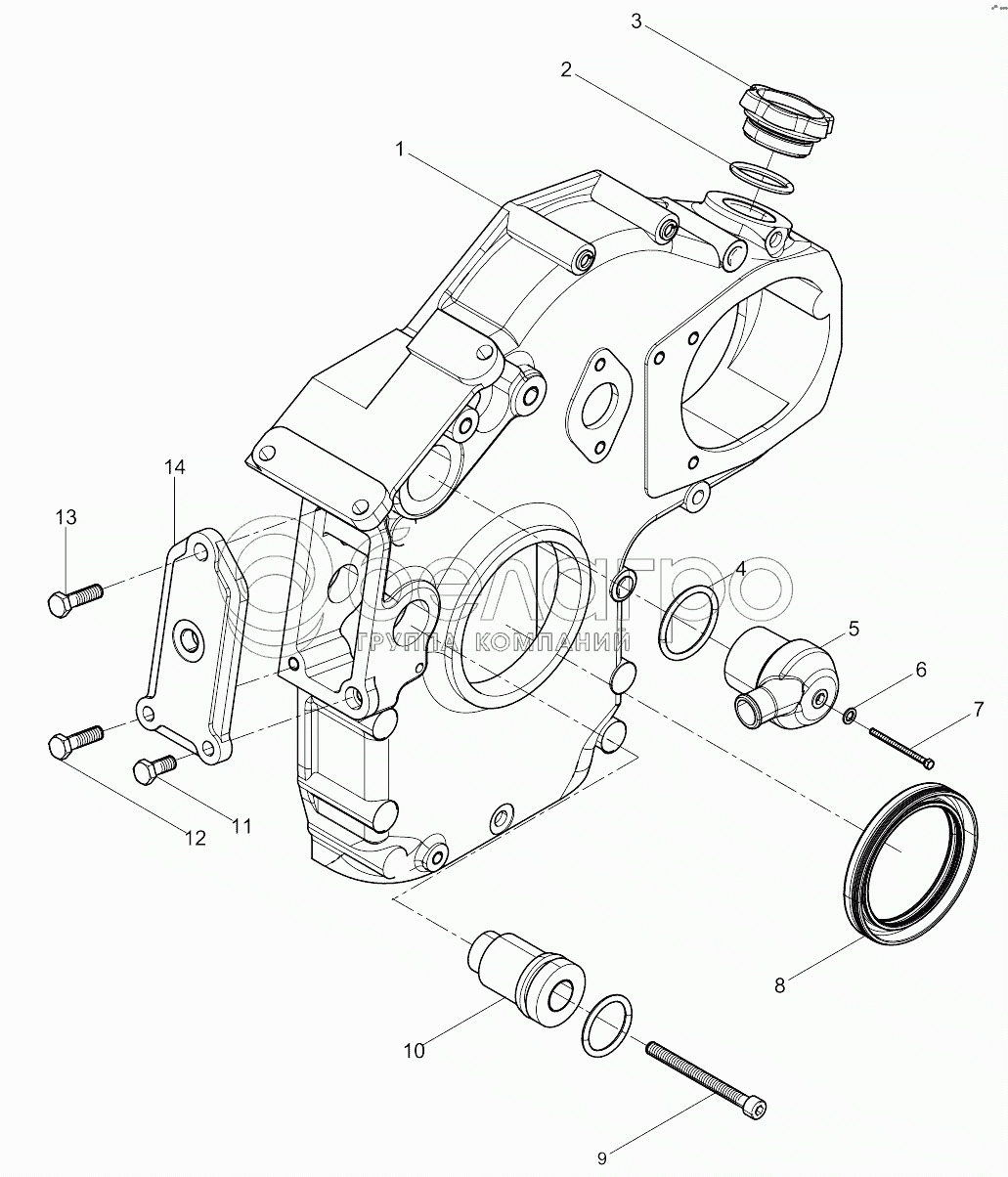 Каталог запасных частей к технике: Weichai WP6 DHB06G0131. Front wall cover subassembly (gear end)