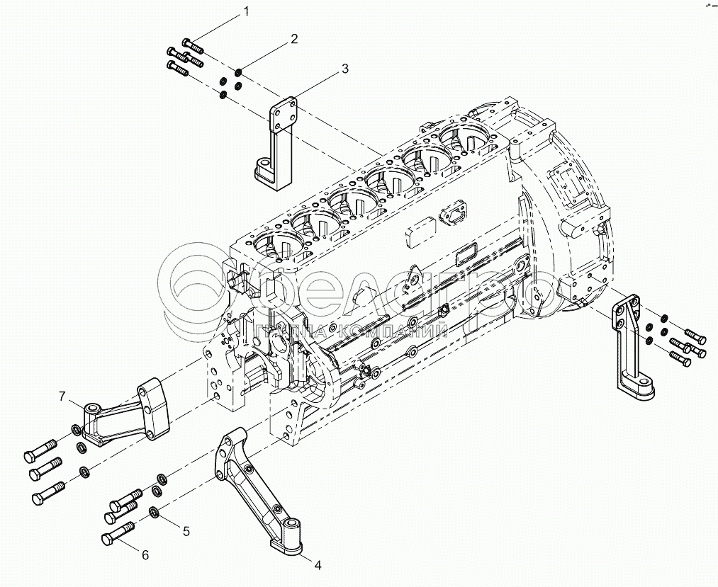 Каталог запасных частей к технике: Weichai WP6D132E200. Engine Bracket Group