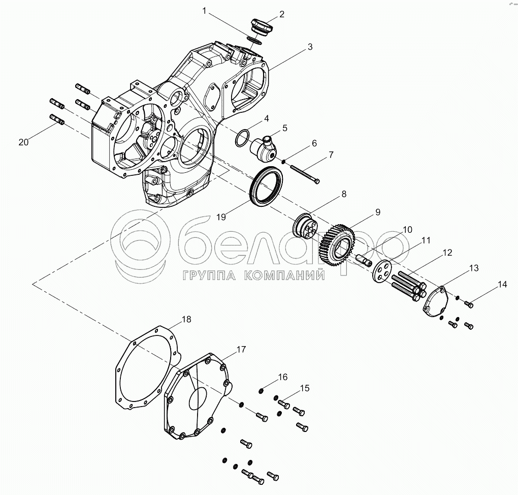 Каталог запасных частей к технике: Weichai WP6D132E200. Front wall cover subassembly (gear end)