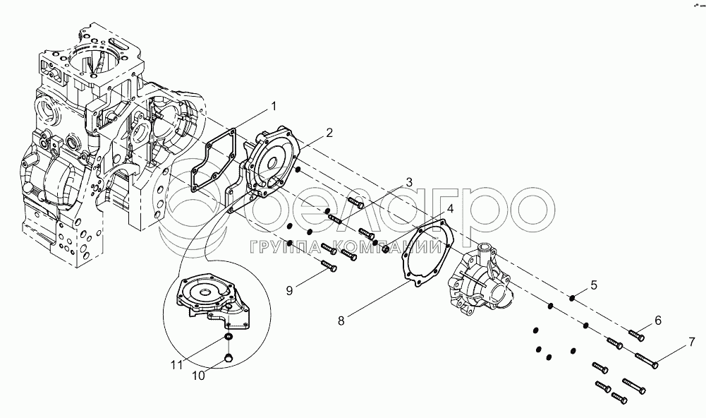 Каталог запасных частей к технике: Weichai WP6D132E200. Intermediate block assembly