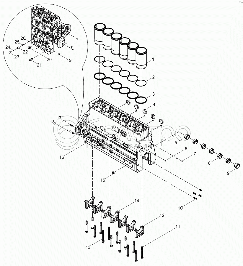Каталог запасных частей к технике: Weichai WP6G125E22. Cylinder block subassembly