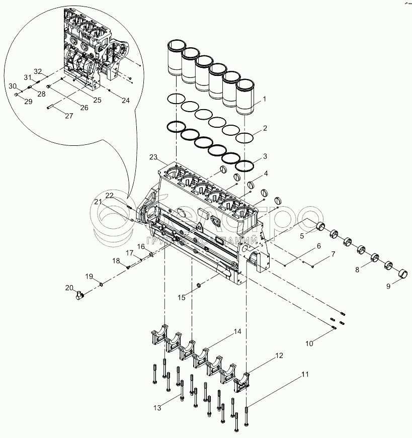 Каталог запасных частей к технике: Weichai WP6G140E22. Cylinder block subassembly