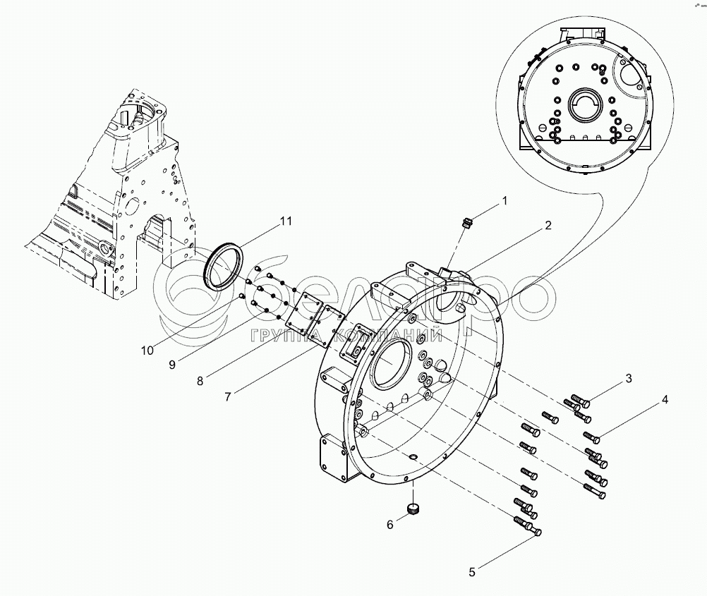 Каталог запасных частей к технике: Weichai WP6G140E22. Flywheel housing assembly