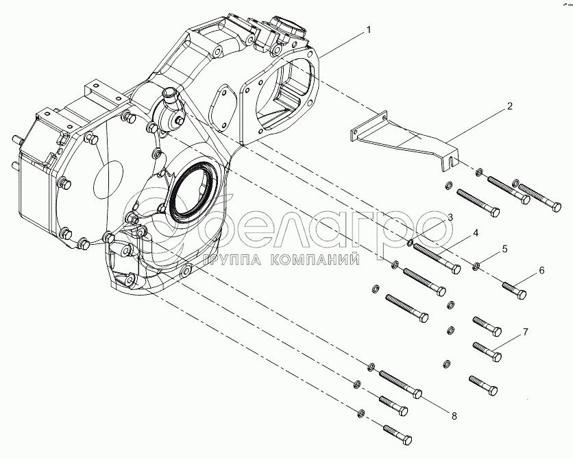 Каталог запасных частей к технике: Weichai WP6G140E22. Front wall cover assembly (gear end)