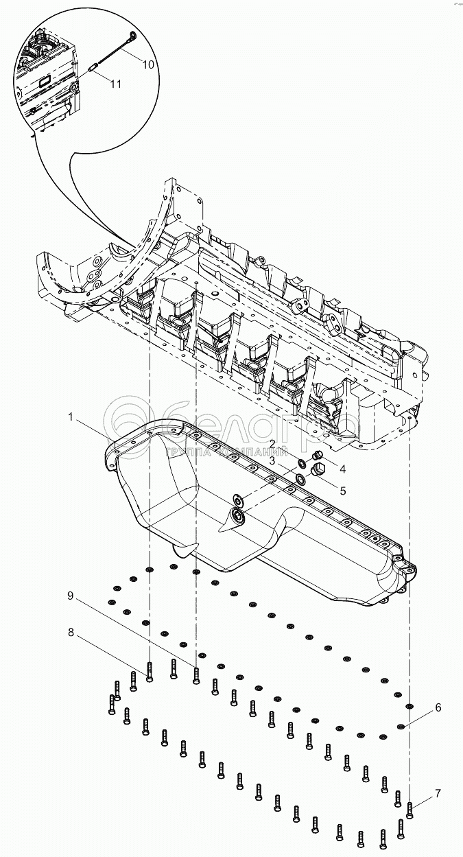 Каталог запасных частей к технике: Weichai WP6G140E22. Oil pan assembly