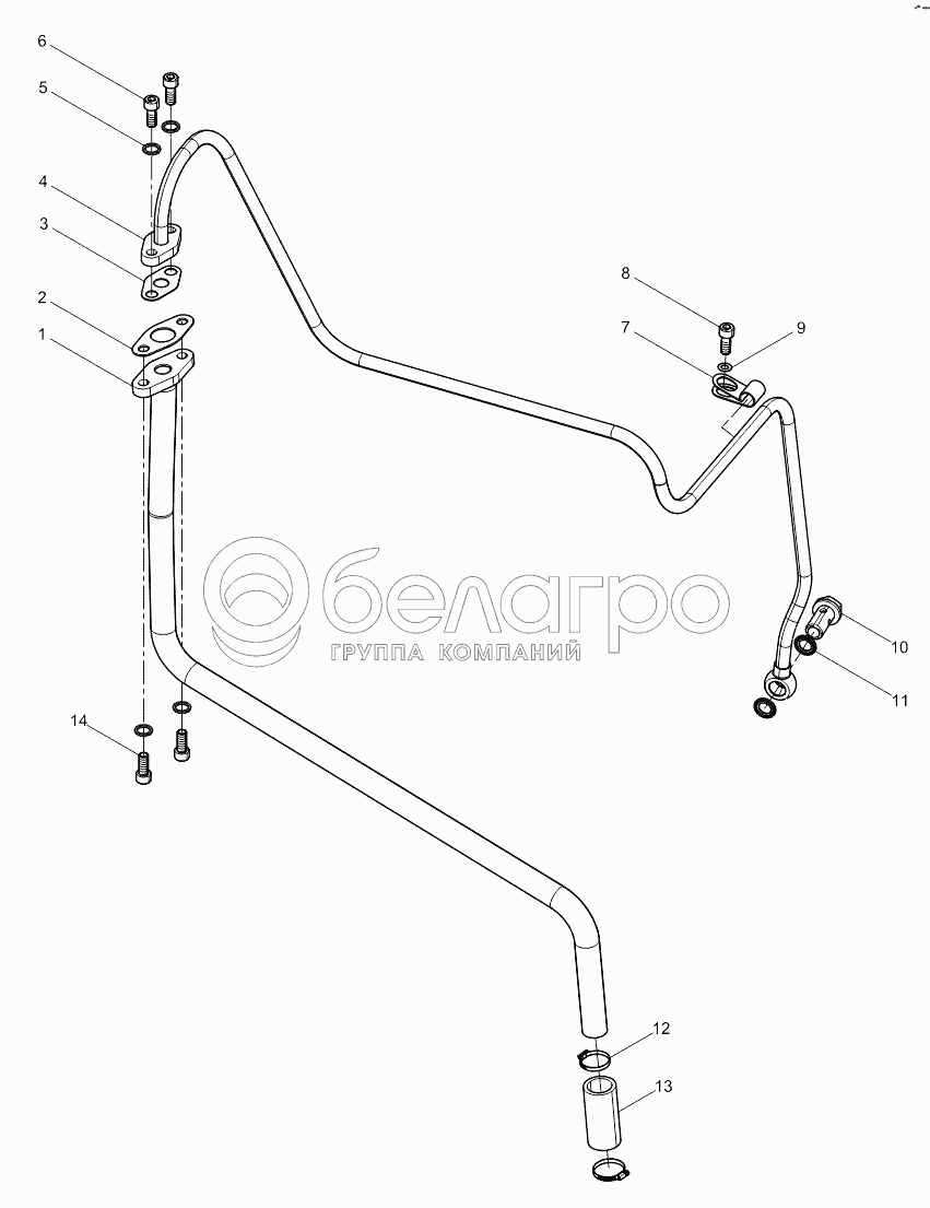 Каталог запасных частей к технике: Weichai WP6G140E22. Supercharger lube tube assembly