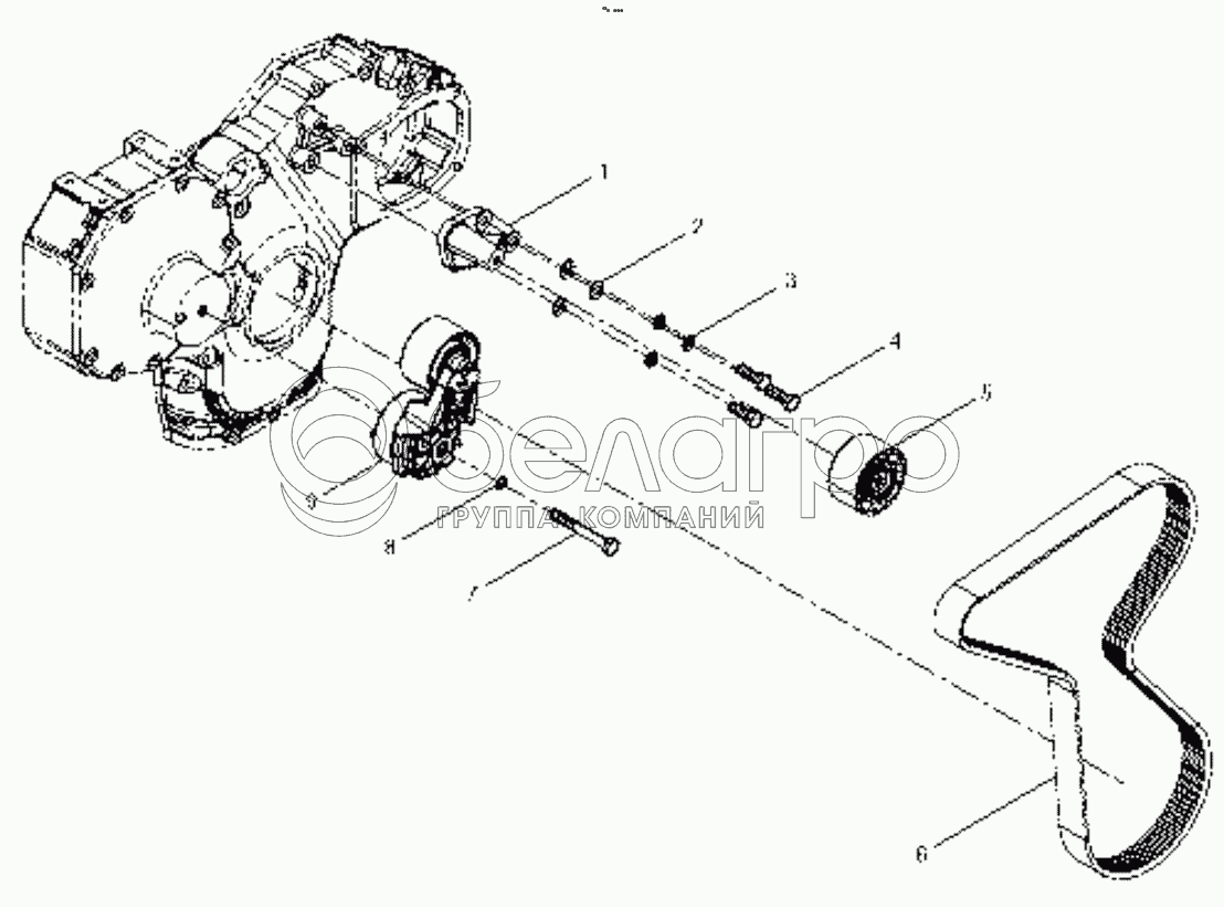Каталог запасных частей к технике: Weichai WP6G175E201. Tensioner and belt group