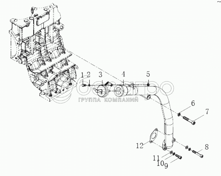 Каталог запасных частей к технике: Weichai WP7. Adding oil pipe combination group