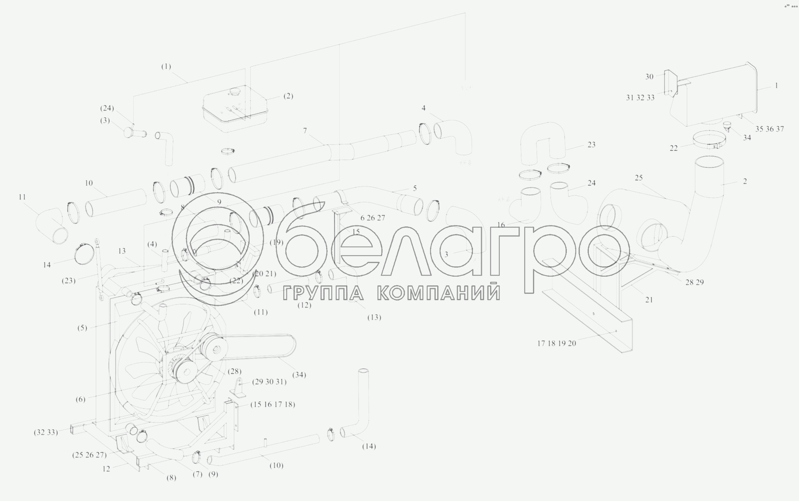 Каталог запасных частей к технике: Weichai WP7. Engine cooling system and air intake system