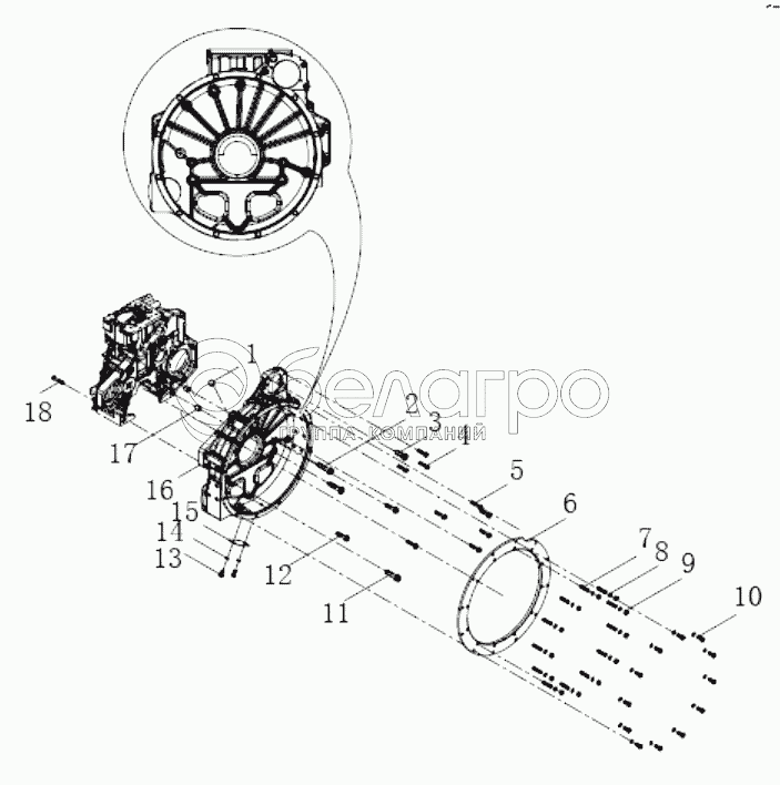 Каталог запасных частей к технике: Weichai WP7. Flywheel housing combination