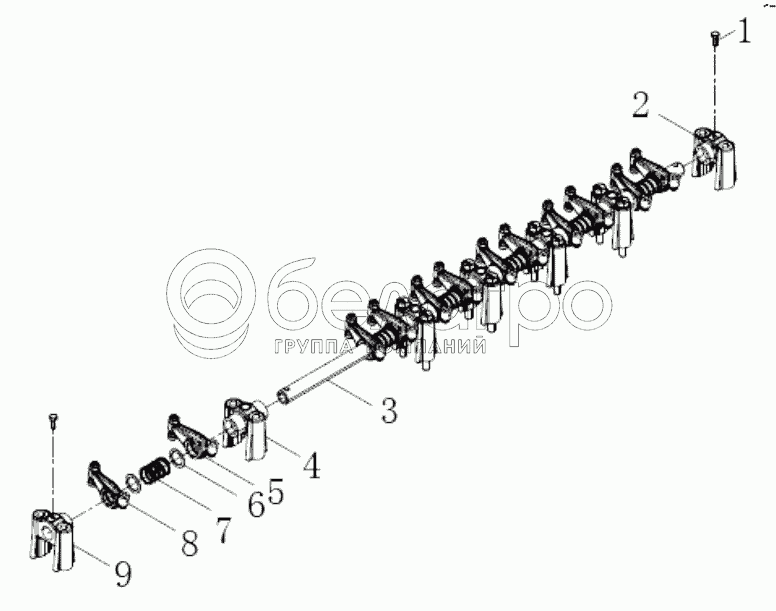 Каталог запасных частей к технике: Weichai WP7. Rocker shaft assembly
