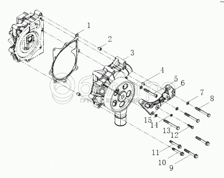 Каталог запасных частей к технике: Weichai WP7. Water pump combination