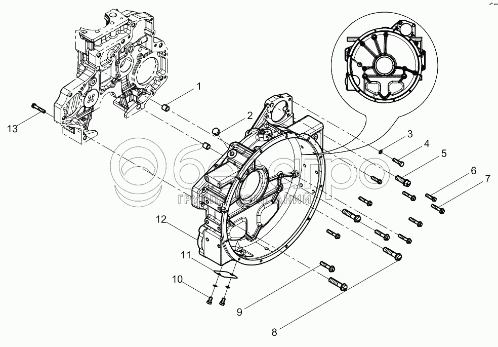 Каталог запасных частей к технике: Weichai WP7.300E51. Flywheel Housing Group