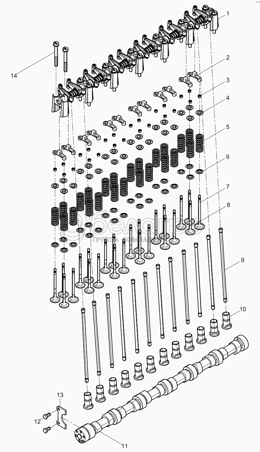 Каталог запасных частей к технике: Weichai WP7.300E51. Valve Train Group