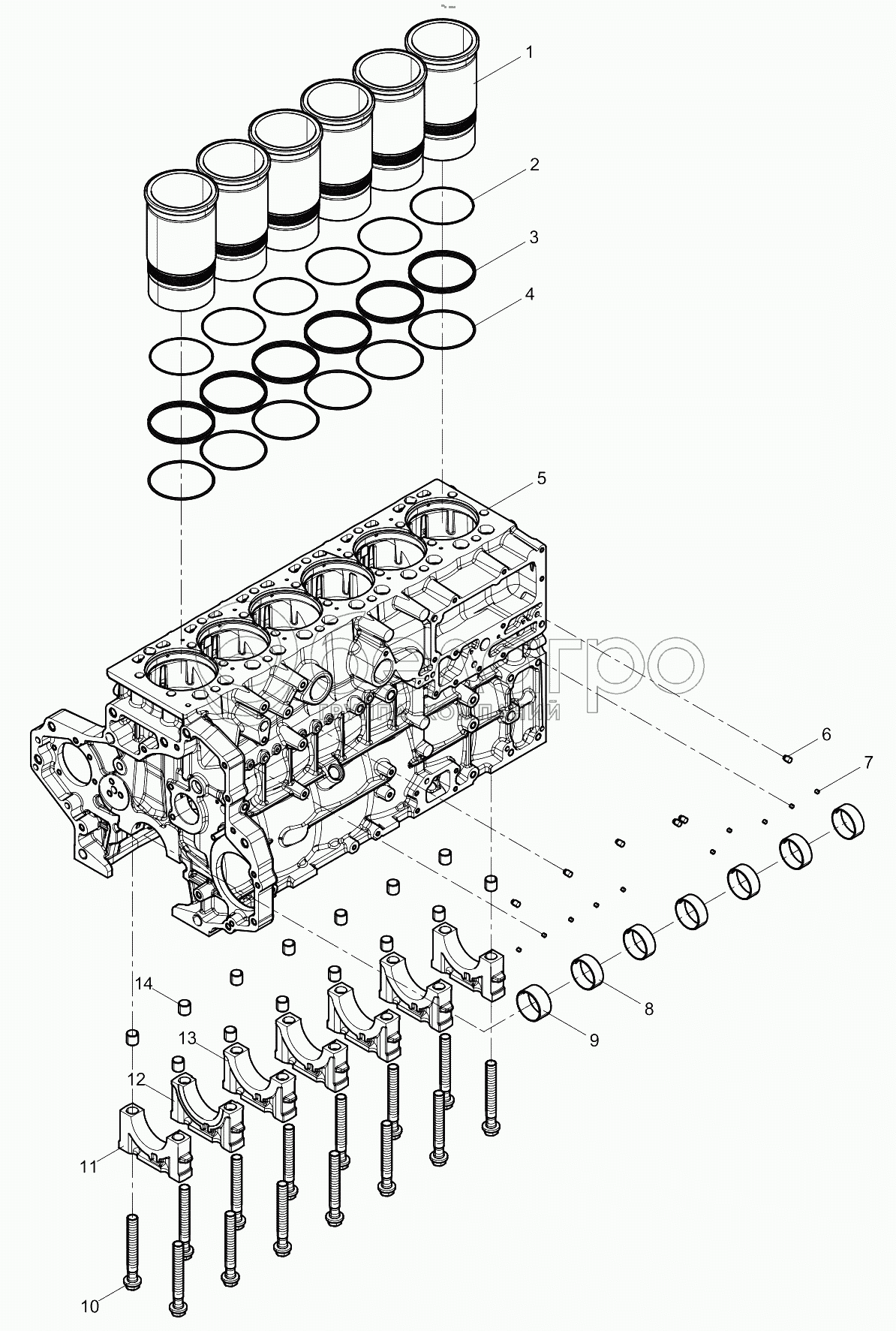 Каталог запасных частей к технике: Weichai WP7 DHP07T0067. Crankcase pre-assembly