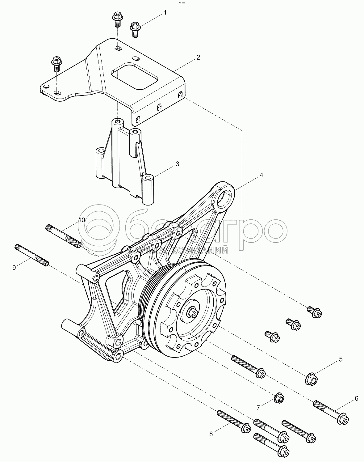 Каталог запасных частей к технике: Weichai WP7 DHP07T0067. Fan Bracket Group