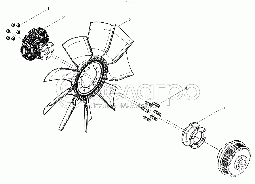 Каталог запасных частей к технике: Weichai WP8 DHP08Q0162. Fan and Hub Group