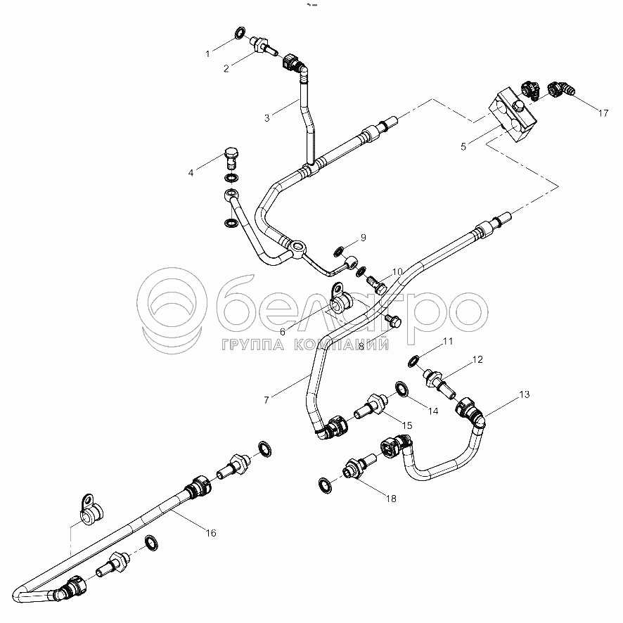 Каталог запасных частей к технике: Weichai WP8 DHP08Q0162. Low Pressure Fuel Pipe Group