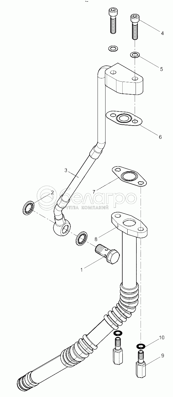 Каталог запасных частей к технике: Weichai WP8 DHP08Q0162. Turbocharger Oil Pipe Group