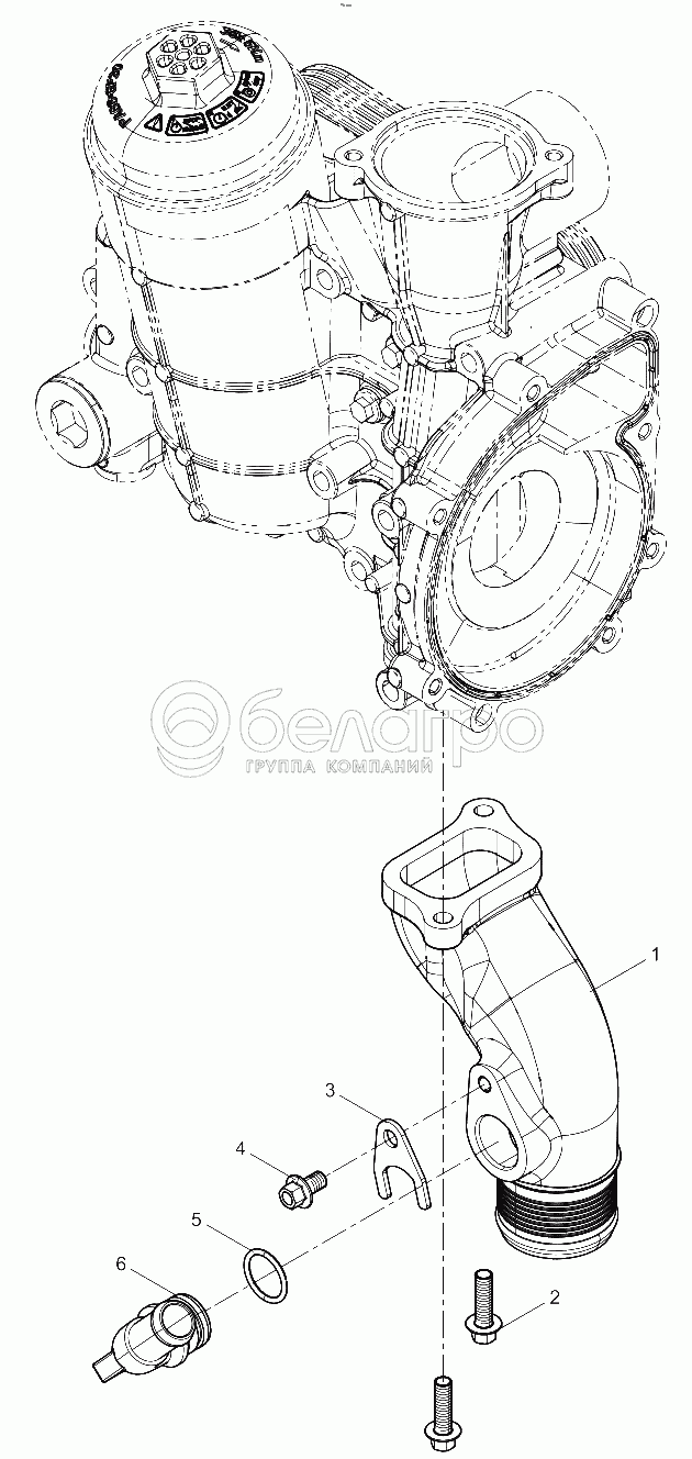 Каталог запасных частей к технике: Weichai WP8 DHP08Q0162. Water Pump Inlet Pipe Group