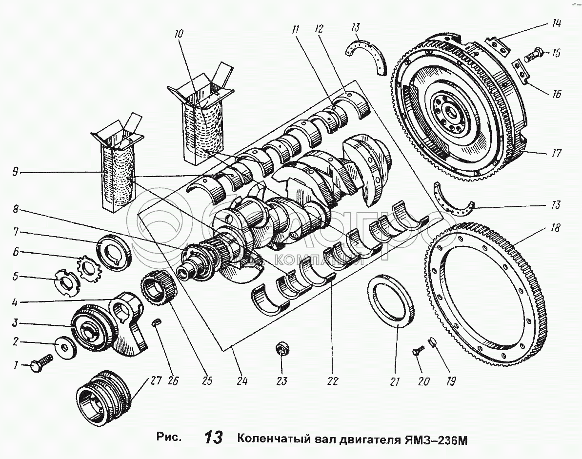 Каталог запасных частей к технике: ЯМЗ Общий (см. мод-ции). Коленчатый вал двигателя ЯМЗ-236М