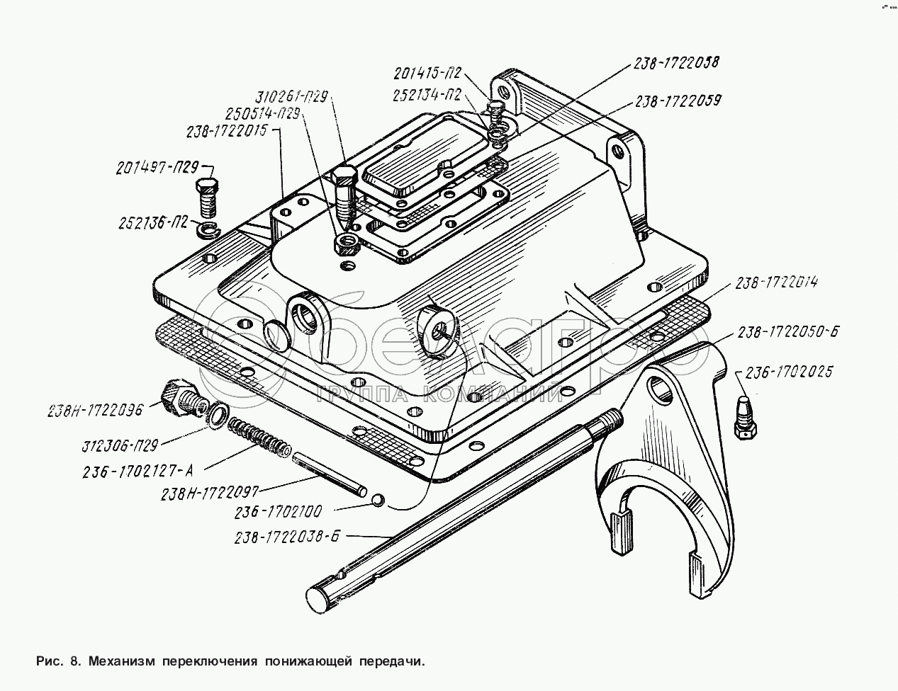 Каталог запасных частей к технике: ЯМЗ Общий (см. мод-ции). Механизм переключения понижающей передачи