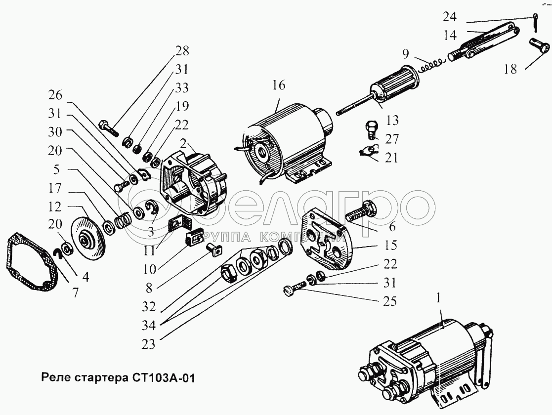 Каталог запасных частей к технике: ЯМЗ Общий (см. мод-ции). Реле стартера СТ103А-01