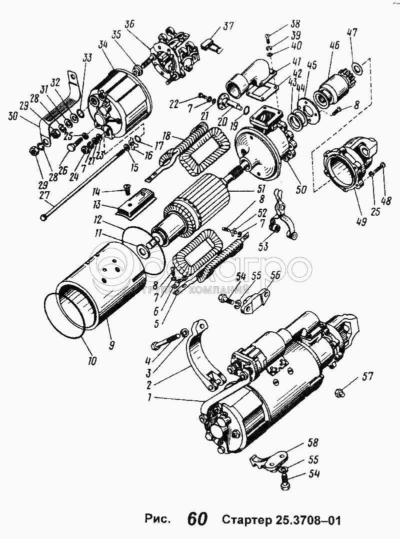 Каталог запасных частей к технике: ЯМЗ Общий (см. мод-ции). Стартер 25.3708-01