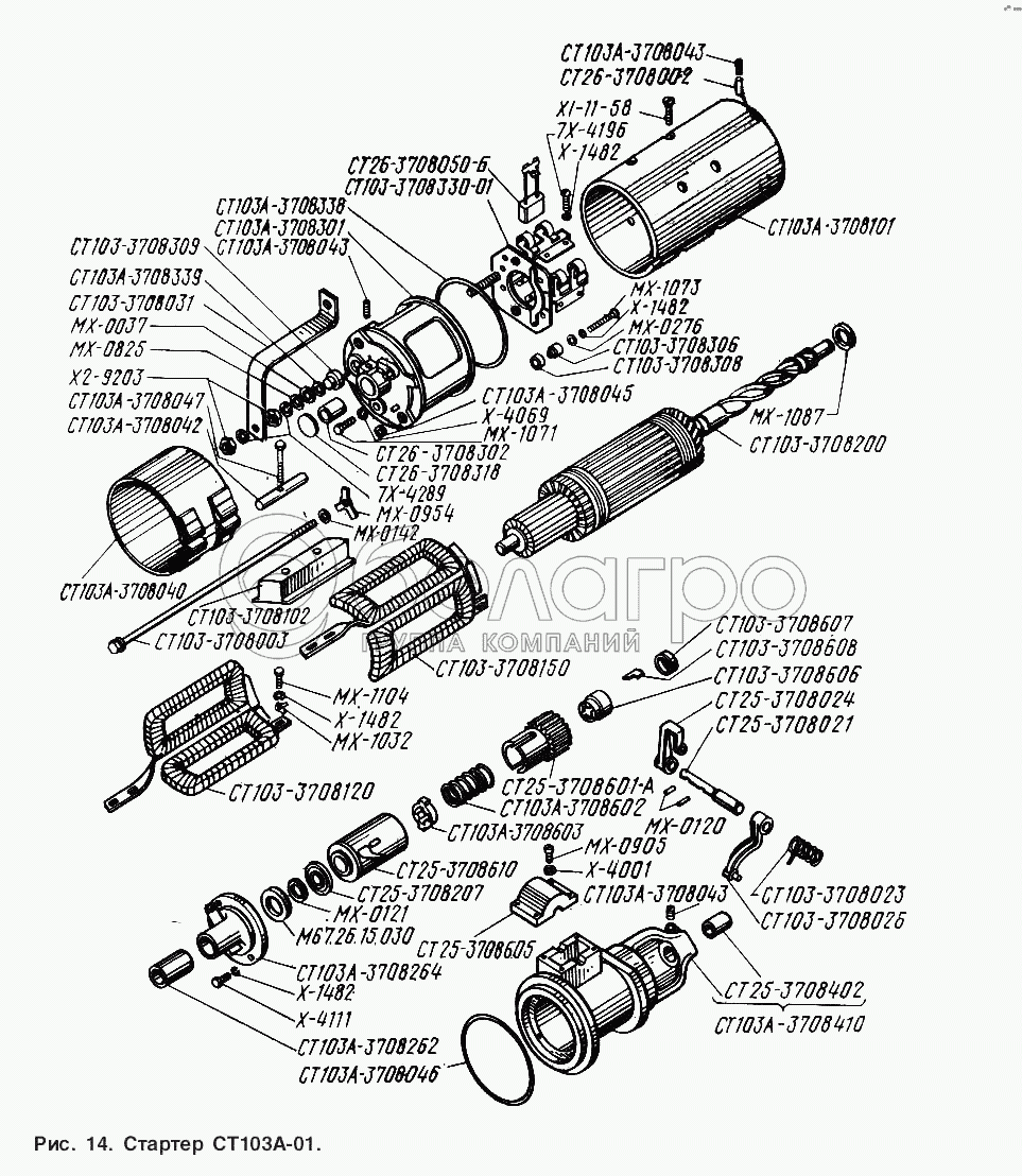 Каталог запасных частей к технике: ЯМЗ Общий (см. мод-ции). Стартер СТ103А-01