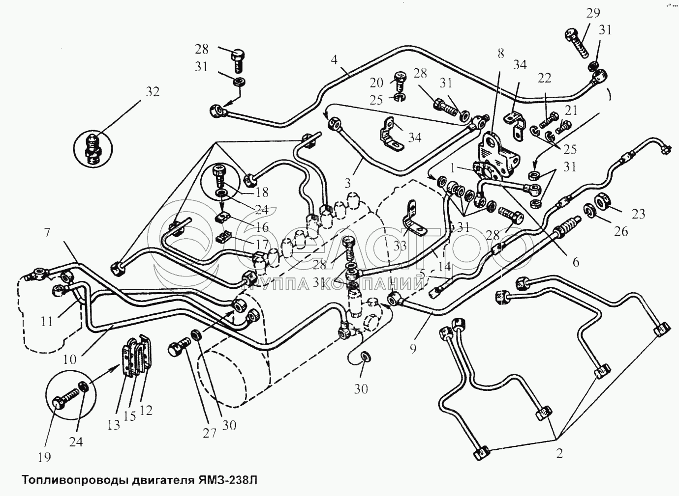 Каталог запасных частей к технике: ЯМЗ Общий (см. мод-ции). Топливопроводы двигателя ЯМЗ-238Л