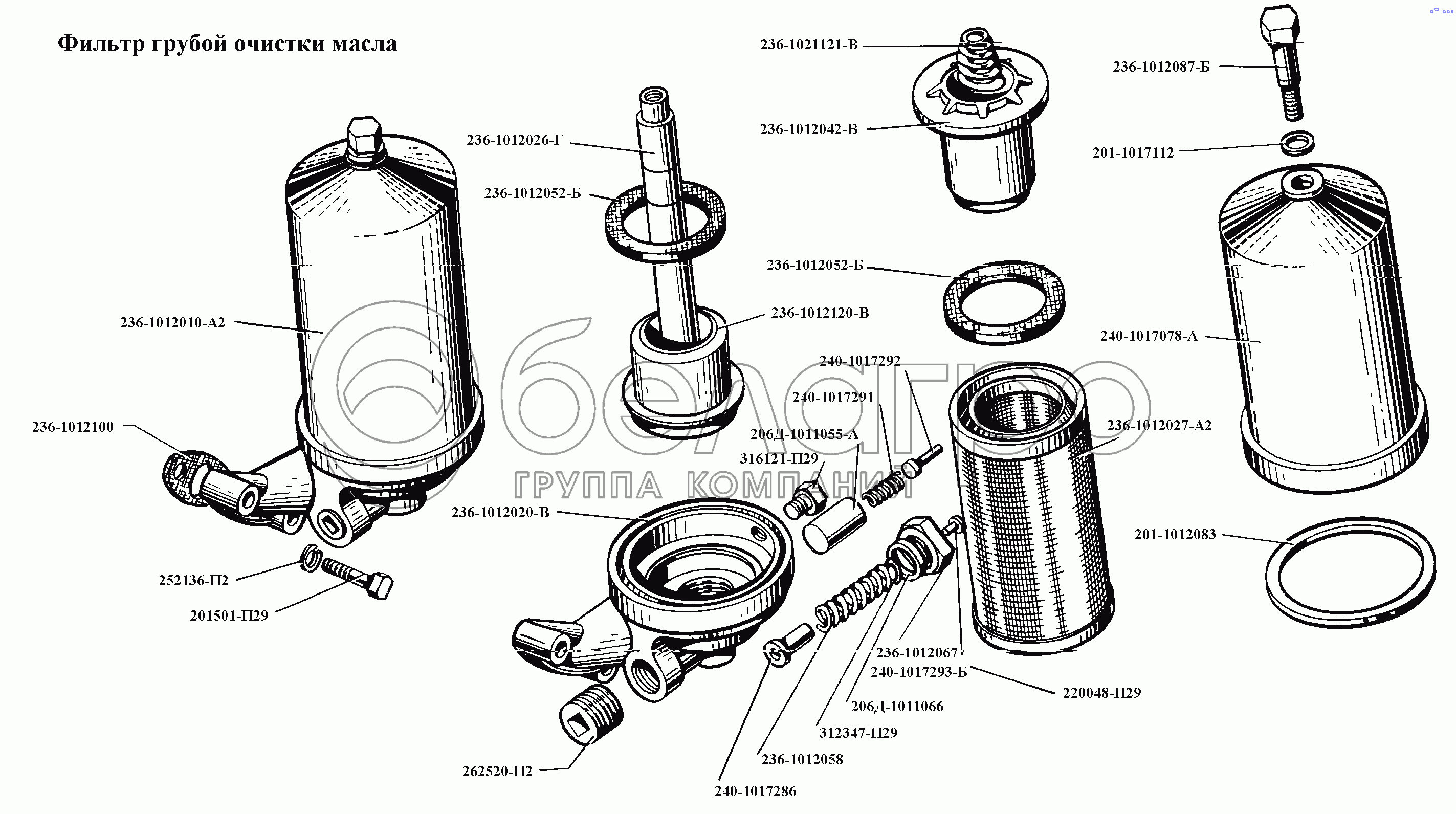 Каталог запасных частей к технике: ЯМЗ-236, -238, -238НБ. Фильтр грубой очистки масла
