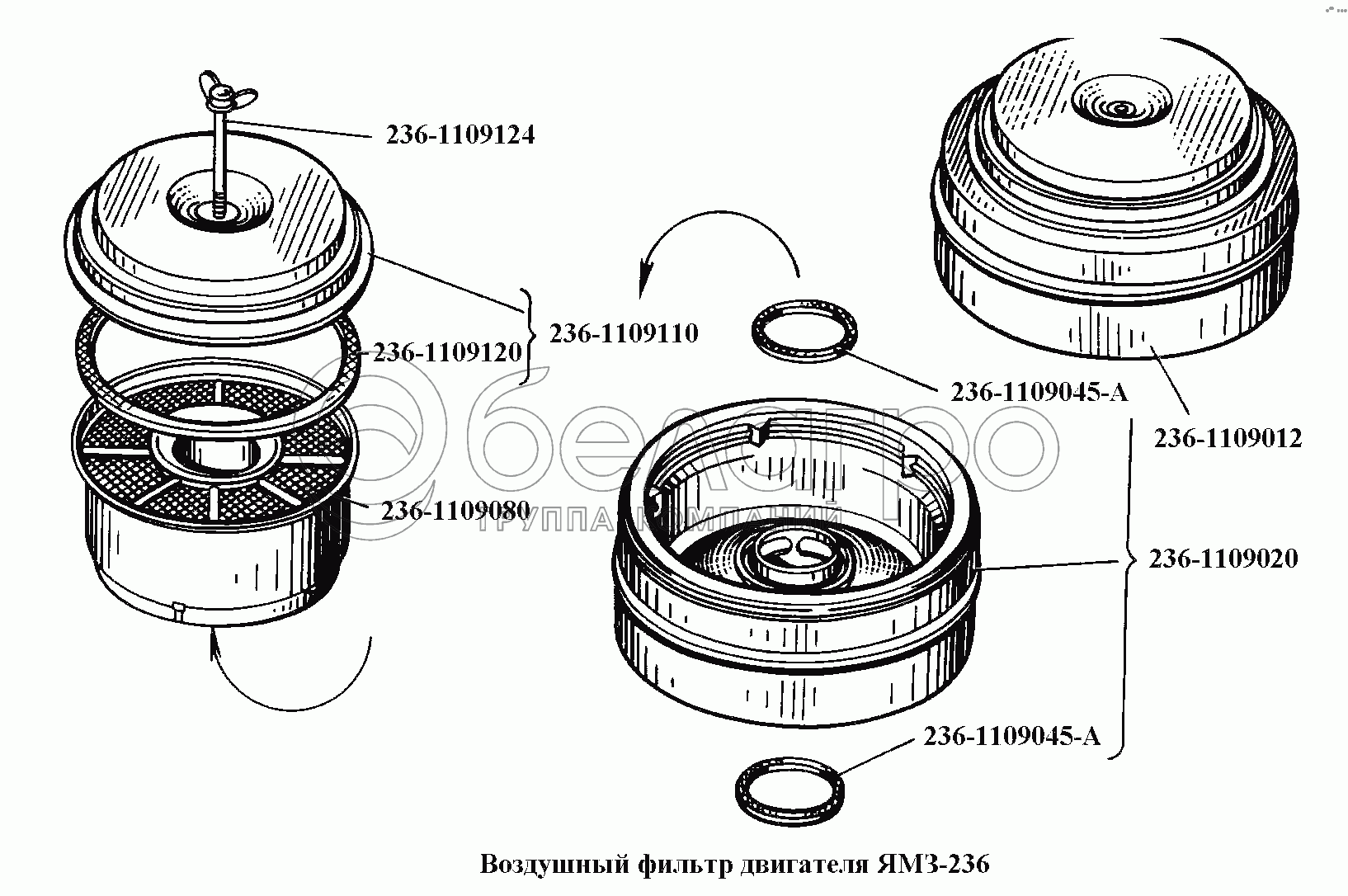 Каталог запасных частей к технике: ЯМЗ-236, -238, -238НБ. Фильтр воздушный двигателя ЯМЗ-236