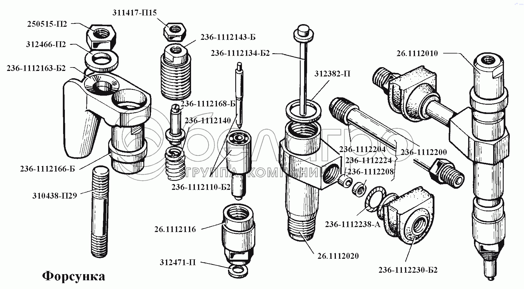 Каталог запасных частей к технике: ЯМЗ-236, -238, -238НБ. Форсунка