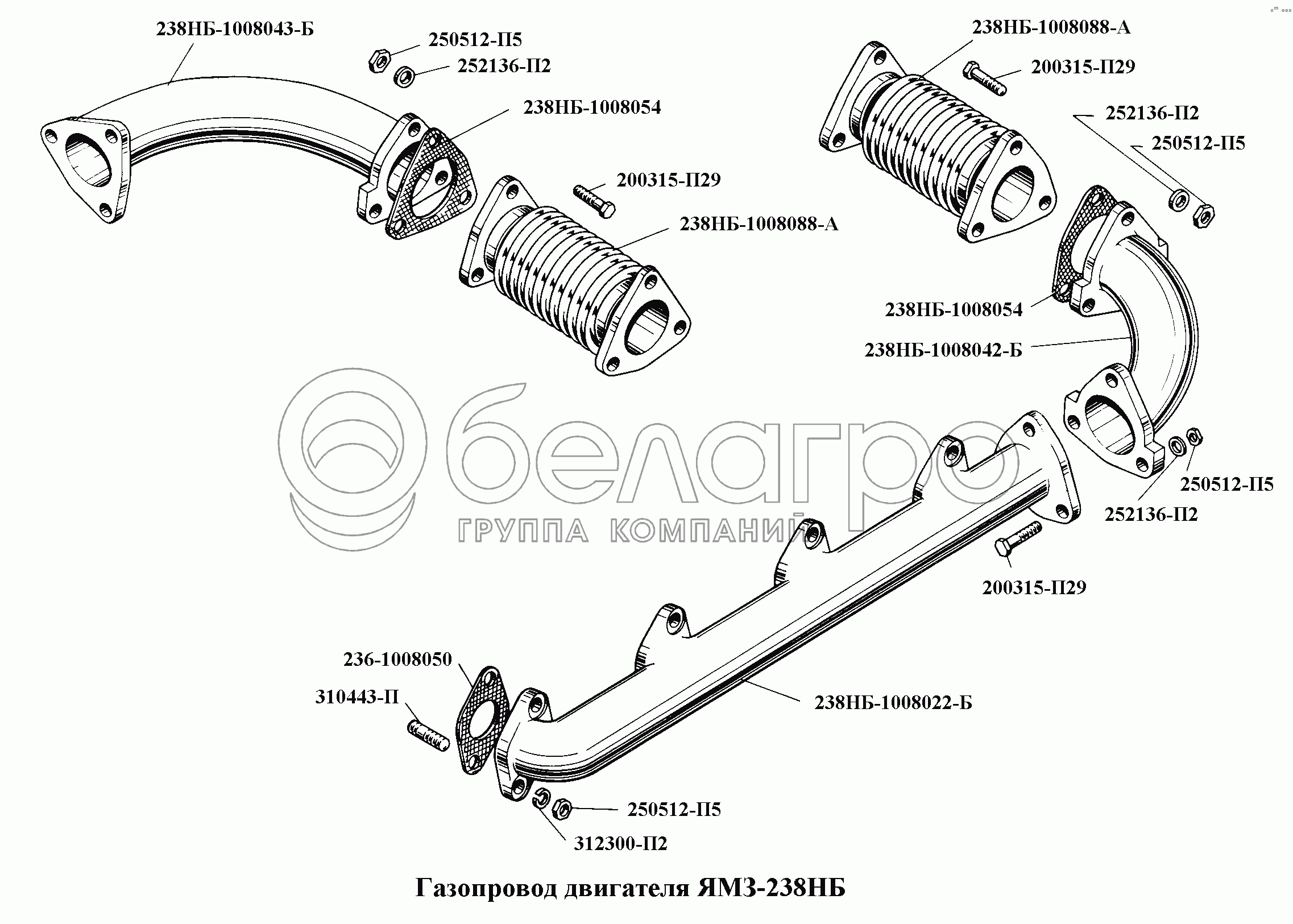 Каталог запасных частей к технике: ЯМЗ-236, -238, -238НБ. Газопровод двигателя ЯМЗ-238НБ