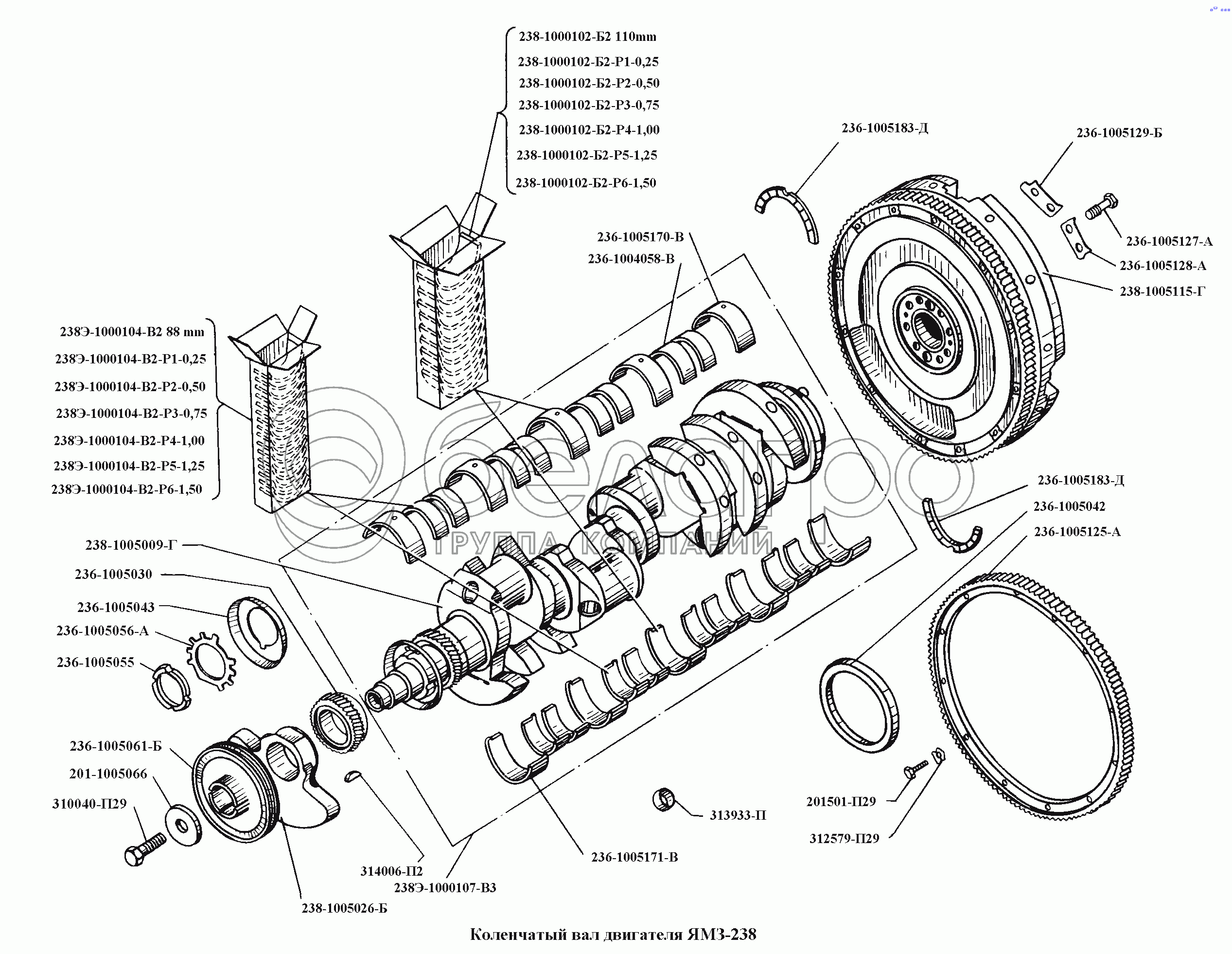 Каталог запасных частей к технике: ЯМЗ-236, -238, -238НБ. Коленчатый вал двигателя ЯМЗ-238