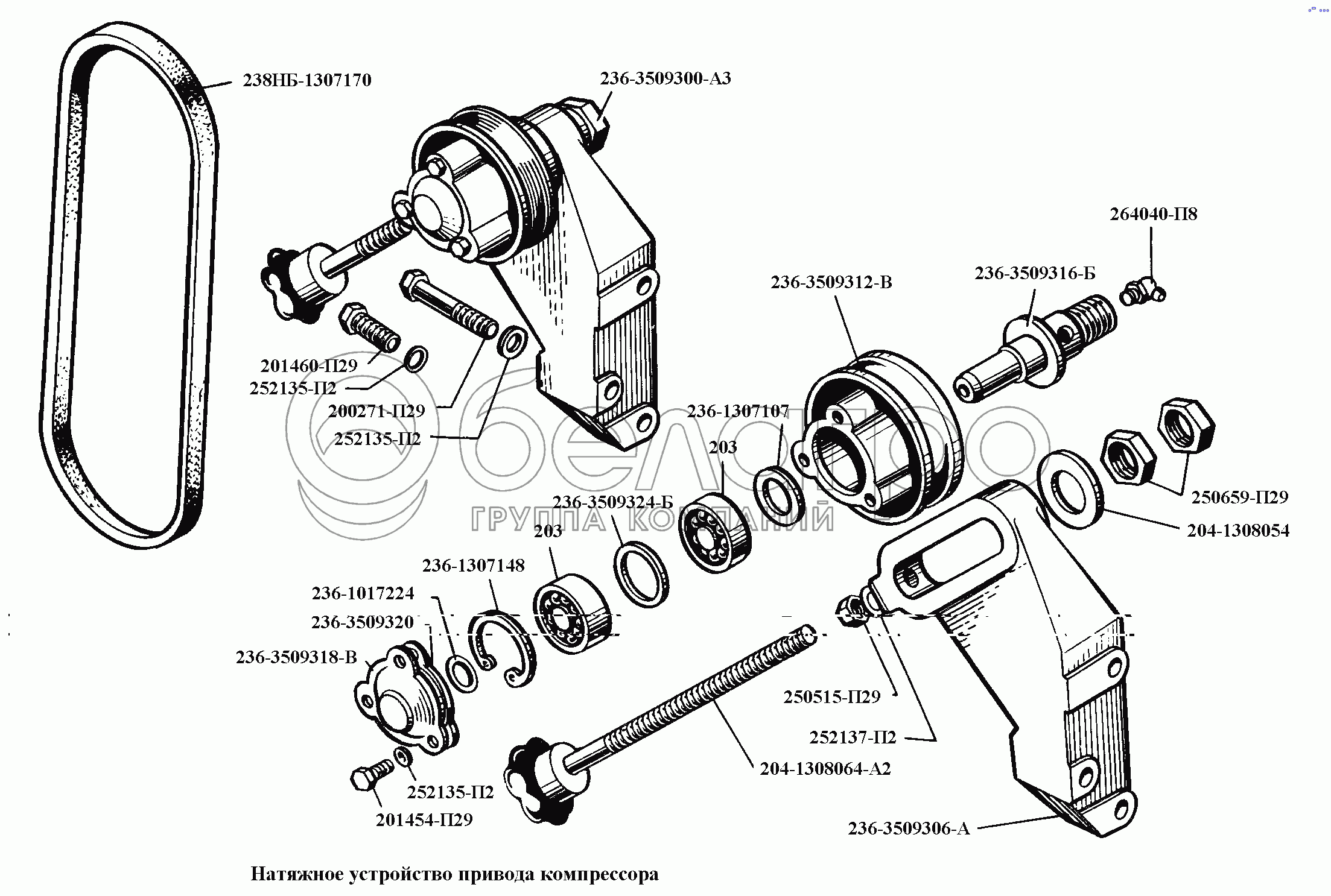 Каталог запасных частей к технике: ЯМЗ-236, -238, -238НБ. Натяжное устройство привода компрессора