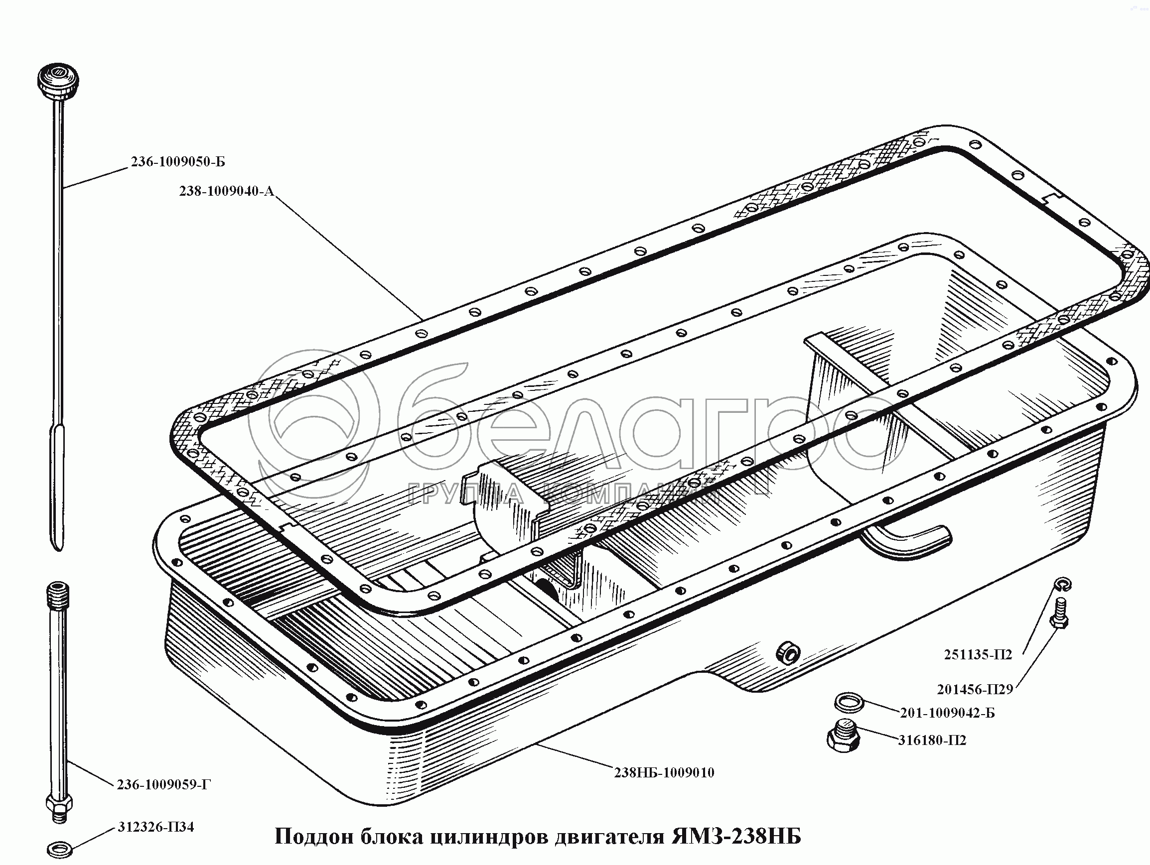 Каталог запасных частей к технике: ЯМЗ-236, -238, -238НБ. Поддон блока цилиндров двигателя ЯМЗ-238НБ