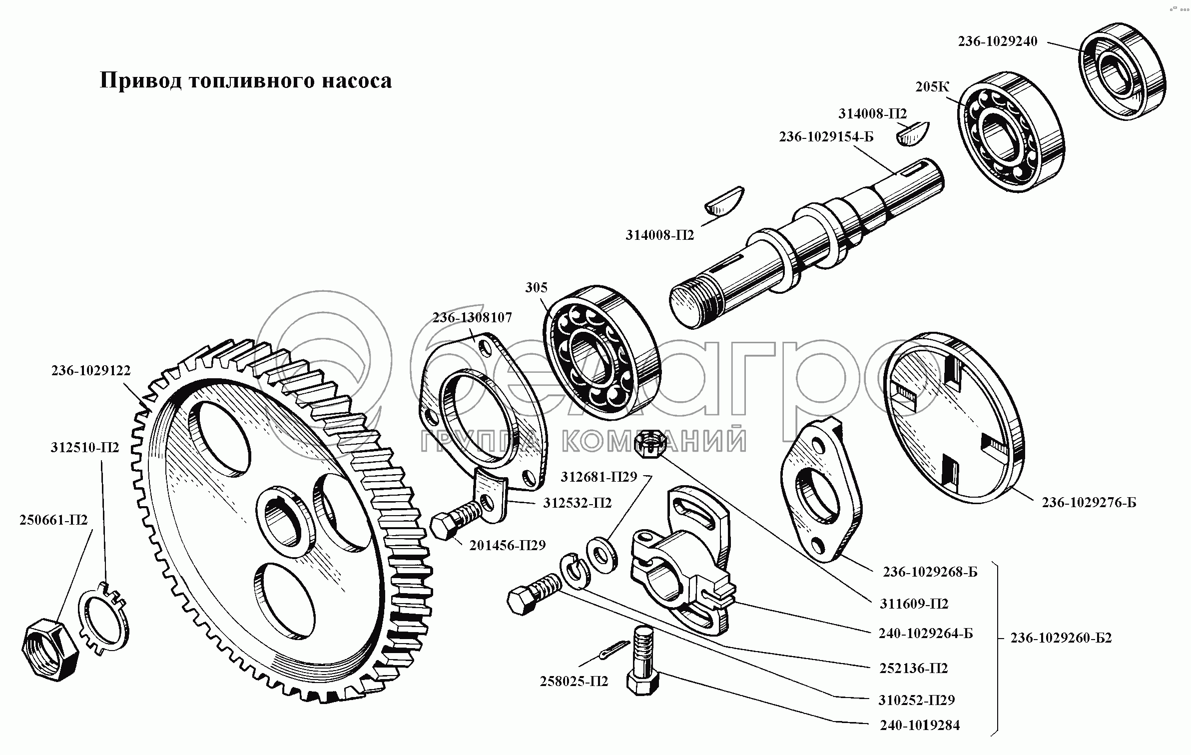 Каталог запасных частей к технике: ЯМЗ-236, -238, -238НБ. Привод топливного насоса