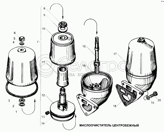 Каталог запасных частей к технике: ЯМЗ-236 ДК и ЯМЗ 238 АК. Маслоочиститель центробежный