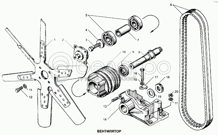 Каталог запасных частей к технике: ЯМЗ-236 ДК и ЯМЗ 238 АК. Вентилятор