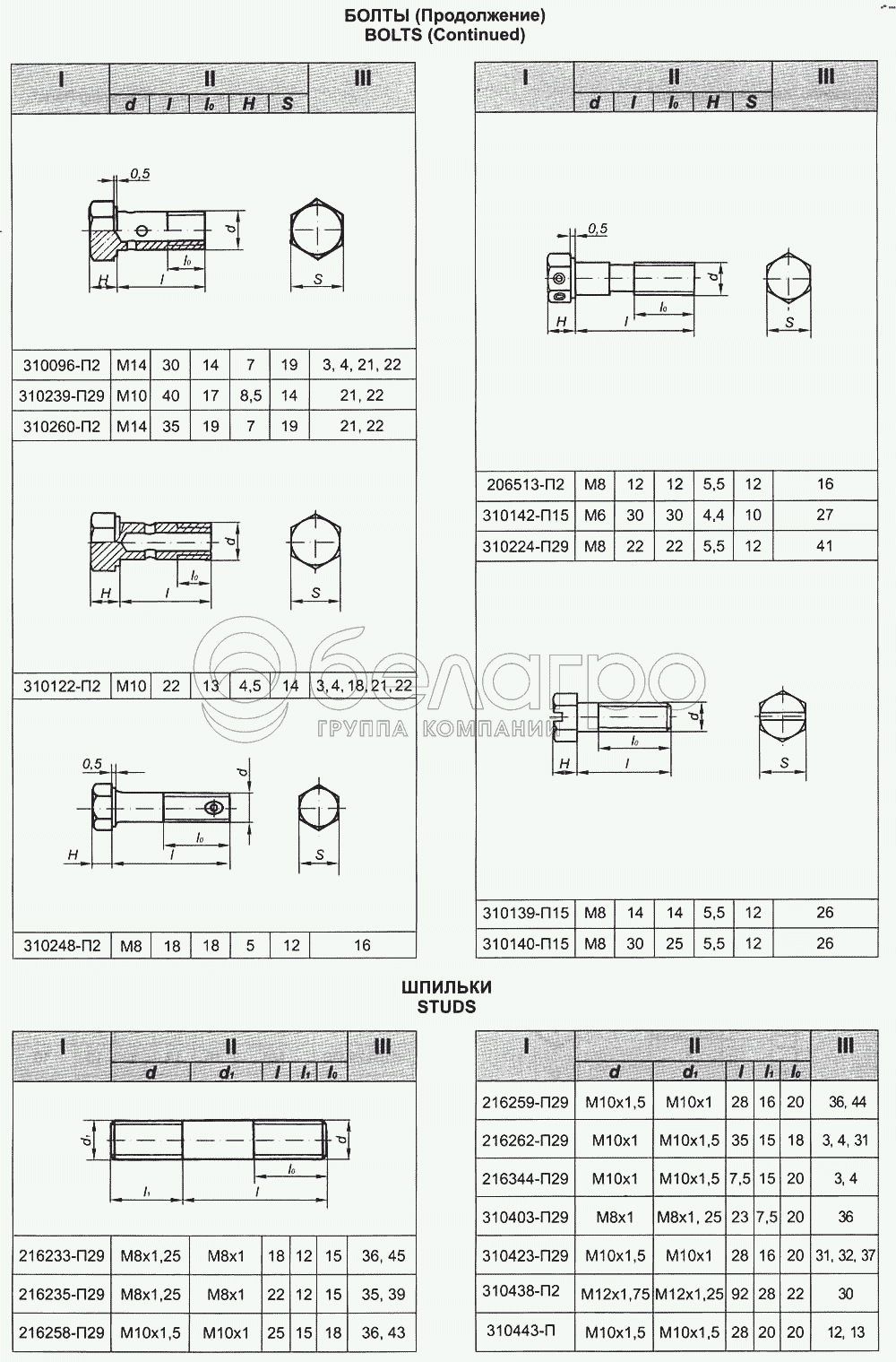 Каталог запасных частей к технике: ЯМЗ-236 М2 и 238 М2. Болты, шпильки