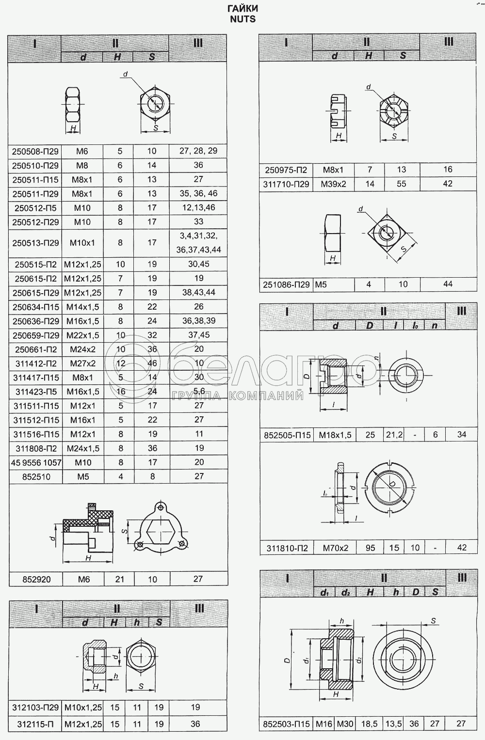 Каталог запасных частей к технике: ЯМЗ-236 М2 и 238 М2. Гайки