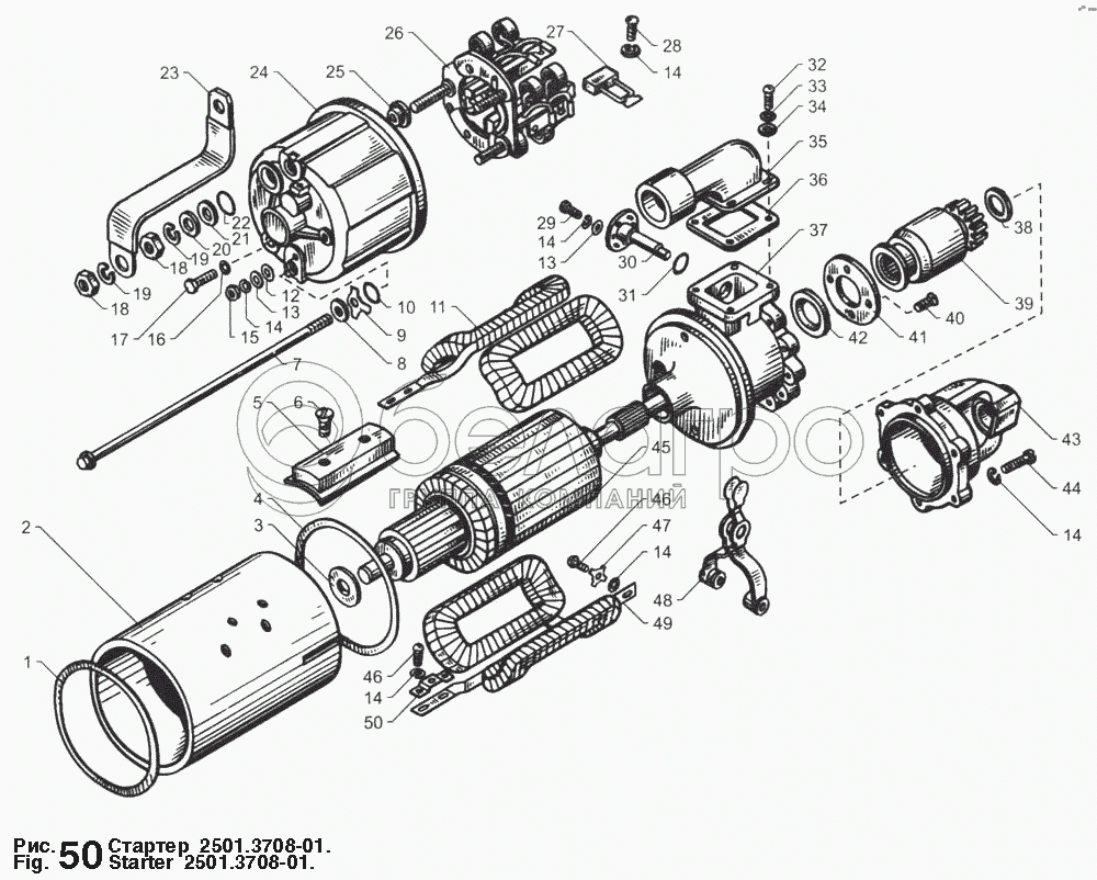 Каталог запасных частей к технике: ЯМЗ-236 М2 и 238 М2. Стартер 2501.3708-01