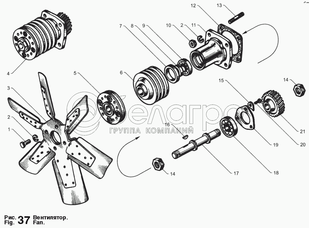 Каталог запасных частей к технике: ЯМЗ-236 М2 и 238 М2. Вентилятор